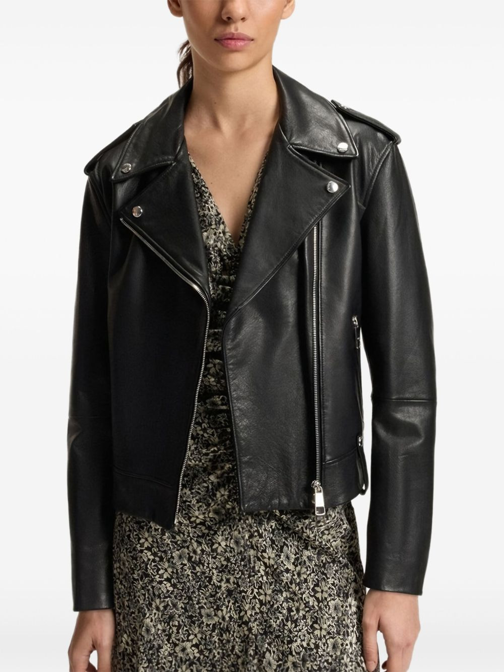 GRAINED-LEATHER JACKET WITH SILVER-TONE TRIMS