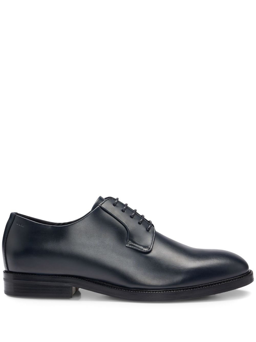 leather Derby shoes Highlights - Navy blue - Leather - Faux leather - Round toe - Front lace-up fastening - Branded insole - Flat sole Made in Italy Composition Outer: Leather 100% Sole: Thermoplastic Polyurethane (TPU) 78%, Leather 12%, Artificial Leather 10% Lining: Polyester 100%