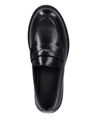leather penny loafers Highlights - Black - Leather upper - Penny strap - Flat sole - Round toe - Moc toe stitching Imported Composition Sole: Calf Leather 100% Outer: Calf Leather 100% Lining: Calf Leather 100%