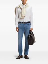 logo-applique jeans Highlights - Blue - Cotton blend - Logo patch - Five-pocket styling - Belt loops Imported Composition Cotton 90%, Polyester 8%, Elastane 2% Washing instructions Machine Wash