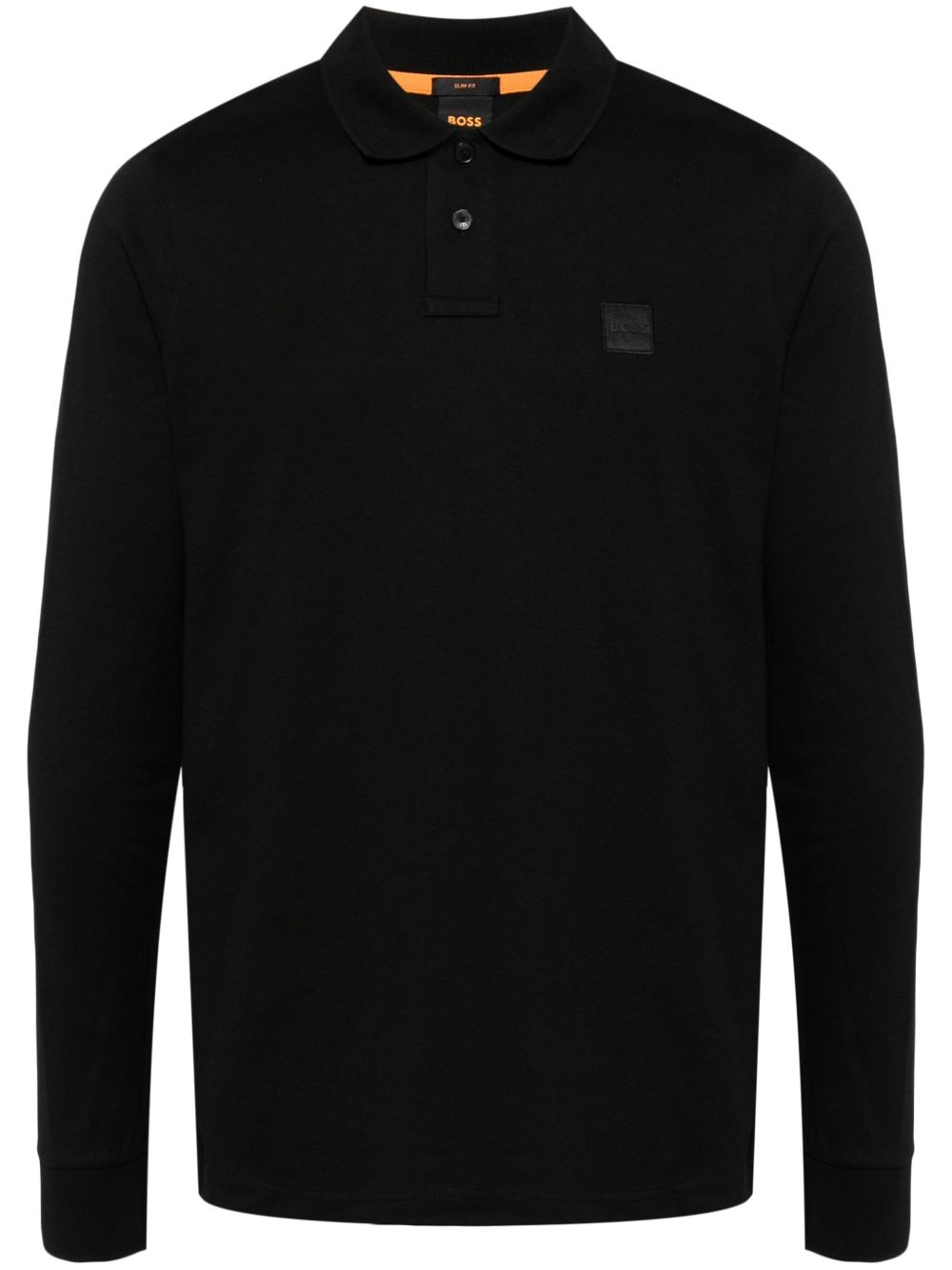 logo-applique long-sleeved polo shirt Highlights - Jet black - Stretch-cotton - Applique logo - Polo collar - Front button placket - Long sleeves - Ribbed cuffs - Straight hem Imported Composition Cotton 95%, Elastane 5% SIZE & FIT Model measurements Height 6 ft 2 in(1.87 m) Bust/Chest 34.25 in(87 cm) Hips 36.22 in(92 cm) Waist 29.52 in(75 cm) FittingInformation Designed for a slim fit, this polo shirt offers a comfortable fit that sits just away from the body Made from a midweight stretch fabric, this piece offers elasticity and flexibility when worn This piece fits true to size – take your usual size Washing instructions Machine Wash