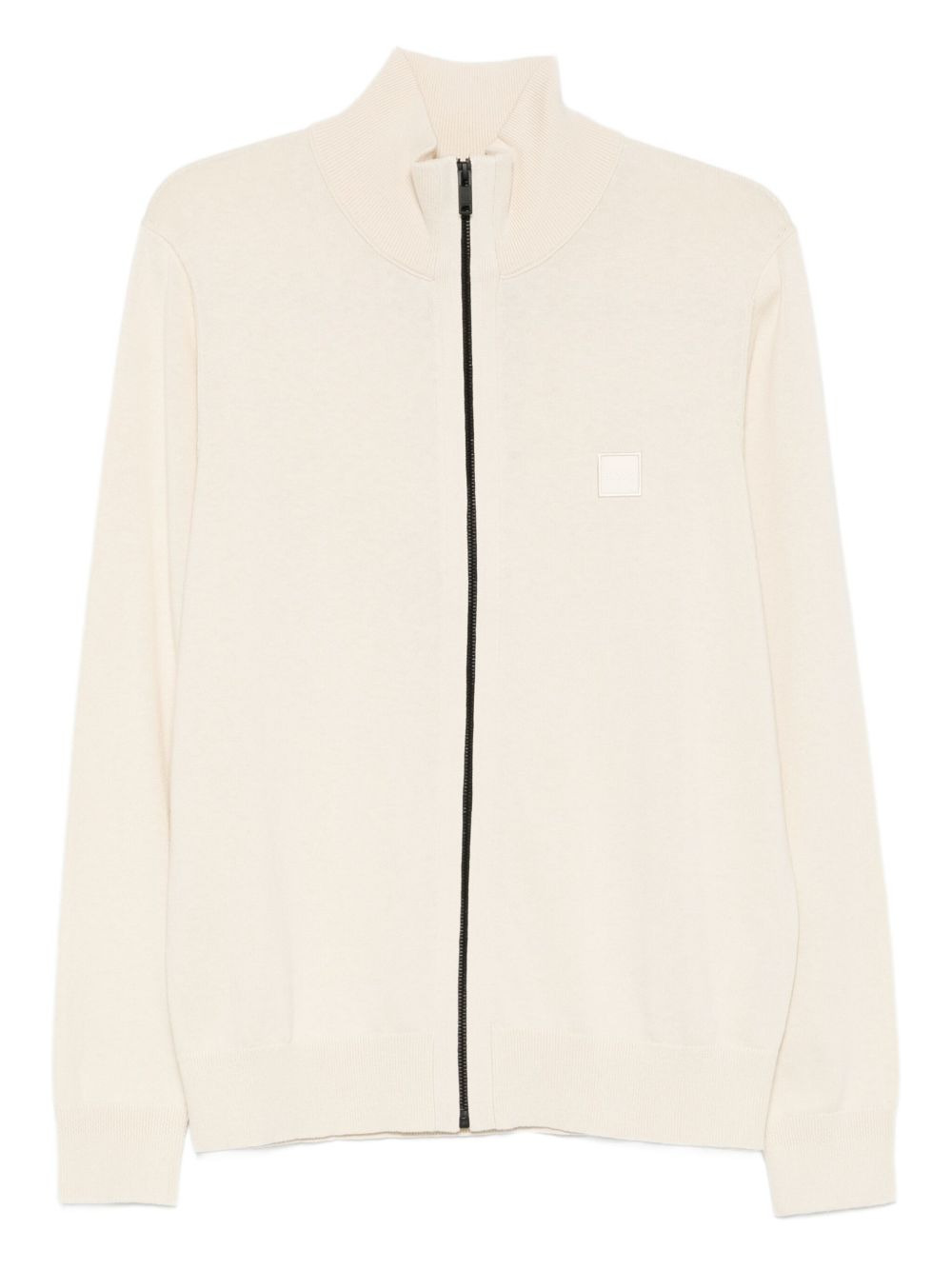 logo-detail cardigan Highlights - Light beige - Front zip fastening - High neck - Logo patch - Long sleeves - Ribbed hem Imported Composition Cotton 95%, Cashmere 5% Washing instructions Read Manufacturer Guidelines