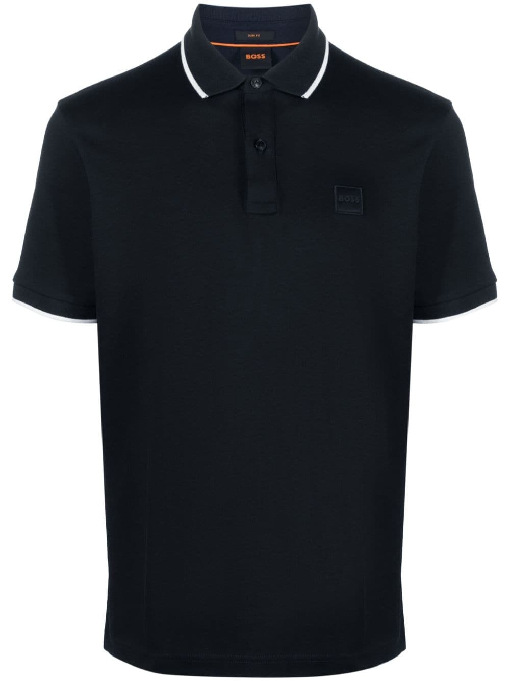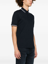 logo-embossed pique polo shirt Highlights - Navy blue - Cmia cotton blend - Pique weave - Striped edge - Embossed logo to the front - Polo collar - Front button placket - Short sleeves - Ribbed cuffs - Straight hem - Unlined Imported Composition Cotton made in Africa (CmiA) 95%, Elastane 5% SIZE & FIT Model measurements Height 6 ft 3 in(1.9 m) Bust/Chest 36.22 in(92 cm) Hips 37.4 in(95 cm) Waist 28.34 in(72 cm) Measurement CHEST 40.15 in(102 cm) LENGTH 27.55 in(70 cm) SLEEVE LENGTH 9.05 in(23 cm) FittingInformation Designed for a slim fit, this polo shirt offers a comfortable fit that sits just away from the body Made from a midweight stretch fabric, this piece offers elasticity and flexibility when worn This piece fits true to size – take your usual size Washing instructions Machine Wash