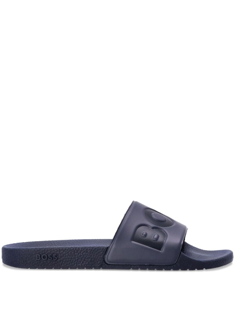logo-embossed slides Highlights - Navy blue - Embossed logo - Open toe - Flat sole - Slip-on style - Rubber sole Made in Italy Composition Sole: Rubber 100% Outer: Rubber 100% Lining: Rubber 100%