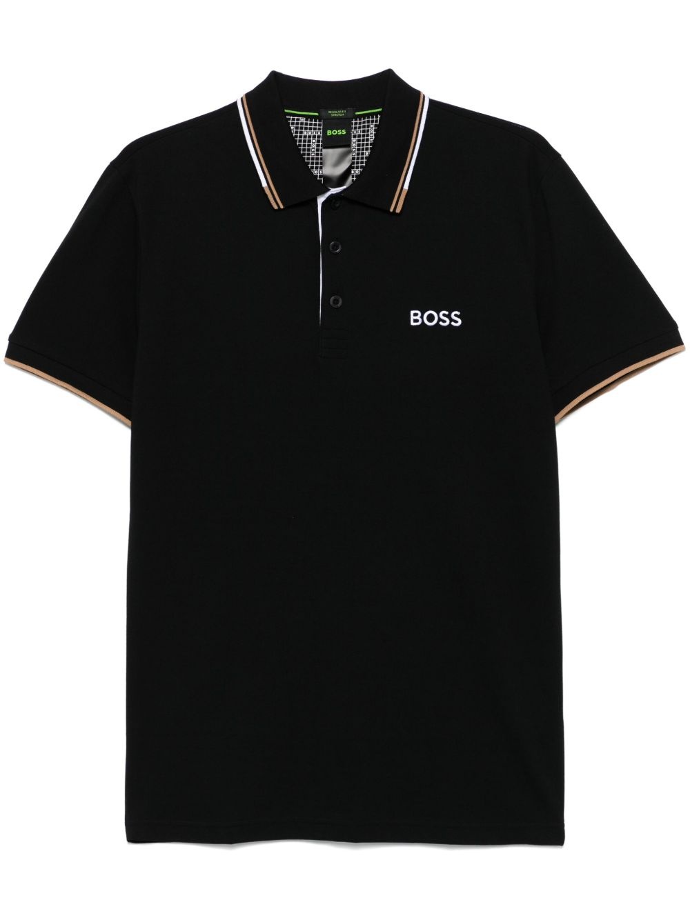 logo-embroidered polo shirt Highlights - Black - Short front button fastening - Short sleeves - Ribbed cuffs Imported Composition Cotton 56%, Polyester 39%, Elastane 5% SIZE & FIT Model measurements Height 6 ft 2 in(1.89 m) Bust/Chest 35.03 in(89 cm) Hips 38.18 in(97 cm) Waist 29.92 in(76 cm) FittingInformation Designed for a regular fit, this polo shirt offers a comfortable loose fit throughout the body Made from a midweight stretch fabric, this piece offers elasticity and flexibility when worn Washing instructions Machine Wash