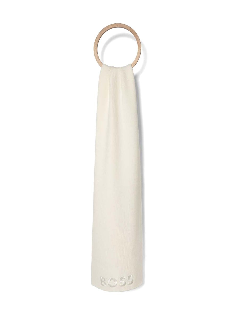 logo-embroidered scarf Highlights - Ecru - Rectangle shape - Finished edge Imported Composition Virgin Wool 100% SIZE & FIT Measurement LENGTH 70.86 in(180 cm) WIDTH 12.2 in(31 cm)