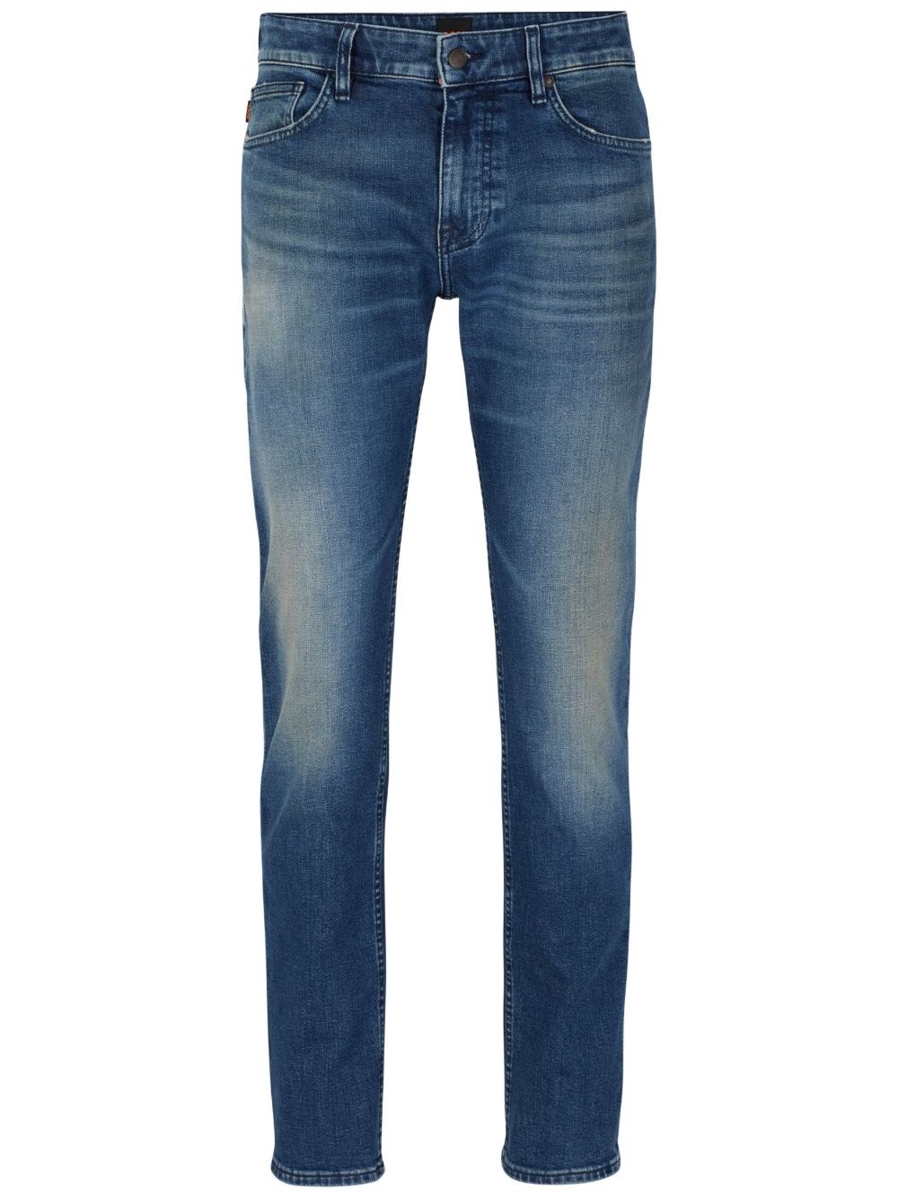 logo-patch cotton blend straight-leg jeans Highlights - Navy blue - Cotton blend - Washed denim - Logo patch to the rear - Logo plaque - Belt loops - Concealed fly and button fastening - Classic five pockets - Straight leg Imported Composition Cotton 90%, Polyester 10%