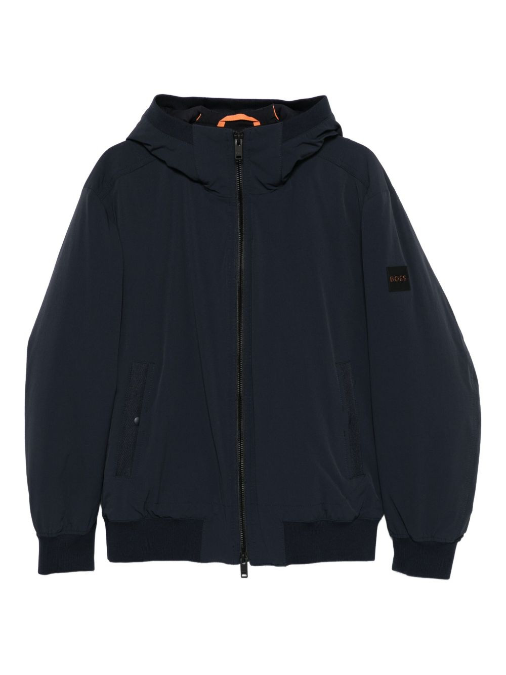 logo-patch padded jacket Highlights - Blue - Hooded neck - Zip fastening - Ribbed cuffs - Ribbed hem - Welt pockets - Logo patch Imported Composition Outer: Polyamide 90%, Elastane 10% Lining: Polyester 100% Washing instructions Machine Wash