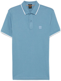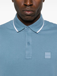 logo-patch polo shirt Highlights - Steel blue - Short front button fastening - Polo collar - Short sleeves - Contrasting trim Imported Composition Cotton 95%, Elastane 5% SIZE & FIT Model measurements Height 6 ft 0 in(1.84 m) Bust/Chest 35.82 in(91 cm) Hips 37 in(94 cm) Waist 28.34 in(72 cm) Measurement CHEST 38.58 in(98 cm) LENGTH 27.16 in(69 cm) SLEEVE LENGTH 9.05 in(23 cm) FittingInformation Designed for a regular fit, this polo shirt offers a comfortable loose fit throughout the body Made from a midweight stretch fabric, this piece offers elasticity and flexibility when worn Washing instructions Machine Wash
