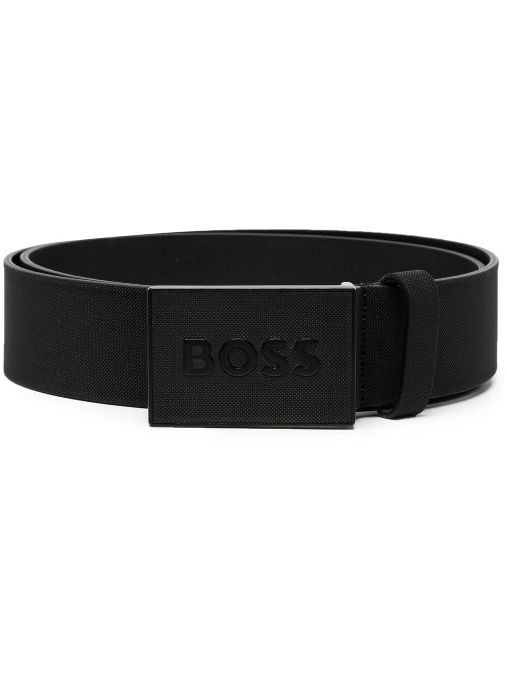 ITALIAN-LEATHER BELT WITH TEXTURED PLAQUE BUCKLE
