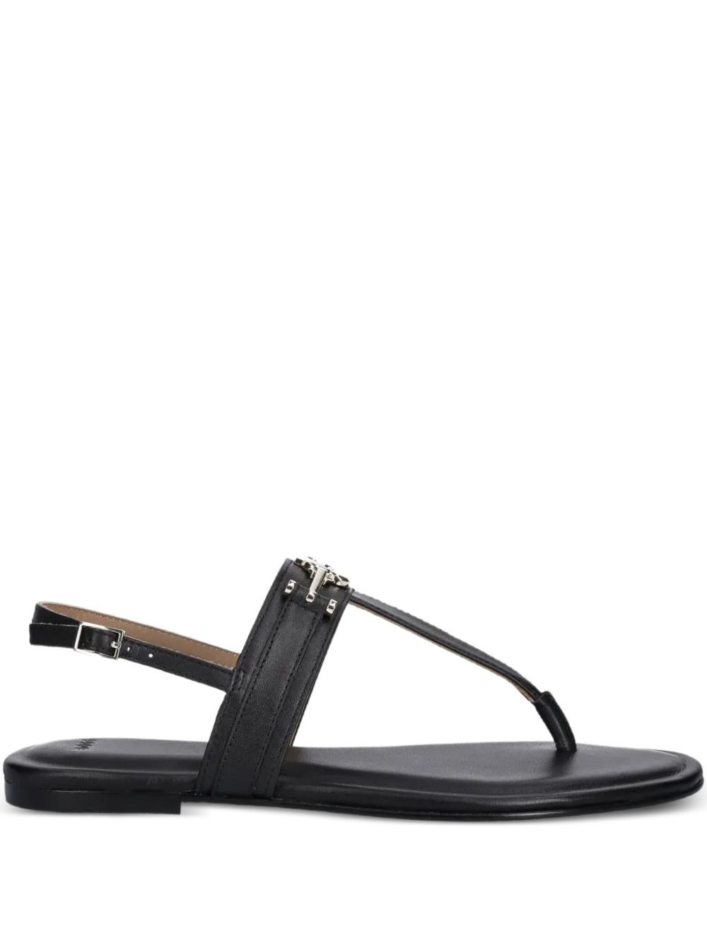logo-plaque sandals Highlights - Black - Buckle-fastening slingback strap - Thong strap - Gold-tone logo plaque Imported Composition Outer: Calf Leather 100% Sole: Leather 100% Lining: Sheepskin 100%