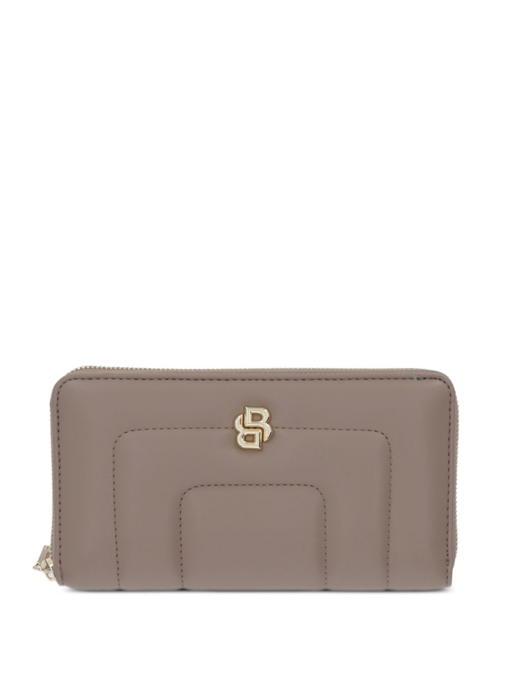 logo-plaque wallet Highlights - Taupe grey - Gold-tone logo - Zip fastening - Panelled design - Internal zip-fastening pocket - Internal card slots Imported Composition Lining: Polyester 100% Outer: Recycled Polyurethane 62%, Polyester 30%, Polyurethane 8% SIZE & FIT Measurement HEIGHT 4.33 in(11 cm) WIDTH 7.67 in(19.5 cm)