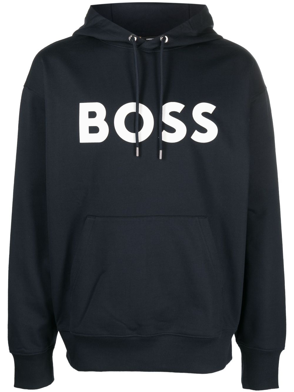 logo-print cotton hoodie Highlights - Navy blue - Cotton - Logo print to the front - Drawstring hood - Long sleeves - Ribbed cuffs and hem - Front pouch pocket Imported Composition Cotton 100% SIZE & FIT Model measurements Height 6 ft 1 in(1.85 m) Bust/Chest 35.43 in(90 cm) Hips 35.82 in(91 cm) Waist 27.55 in(70 cm) Measurement CHEST 44.88 in(114 cm) SLEEVE LENGTH 23.22 in(59 cm) LENGTH 25.98 in(66 cm) FittingInformation Designed for a relaxed fit, this piece allows for comfort and movement when worn Made from a midweight non-stretch fabric, this piece offers minimal elasticity when worn This piece fits true to size – take your usual size Washing instructions Machine Wash