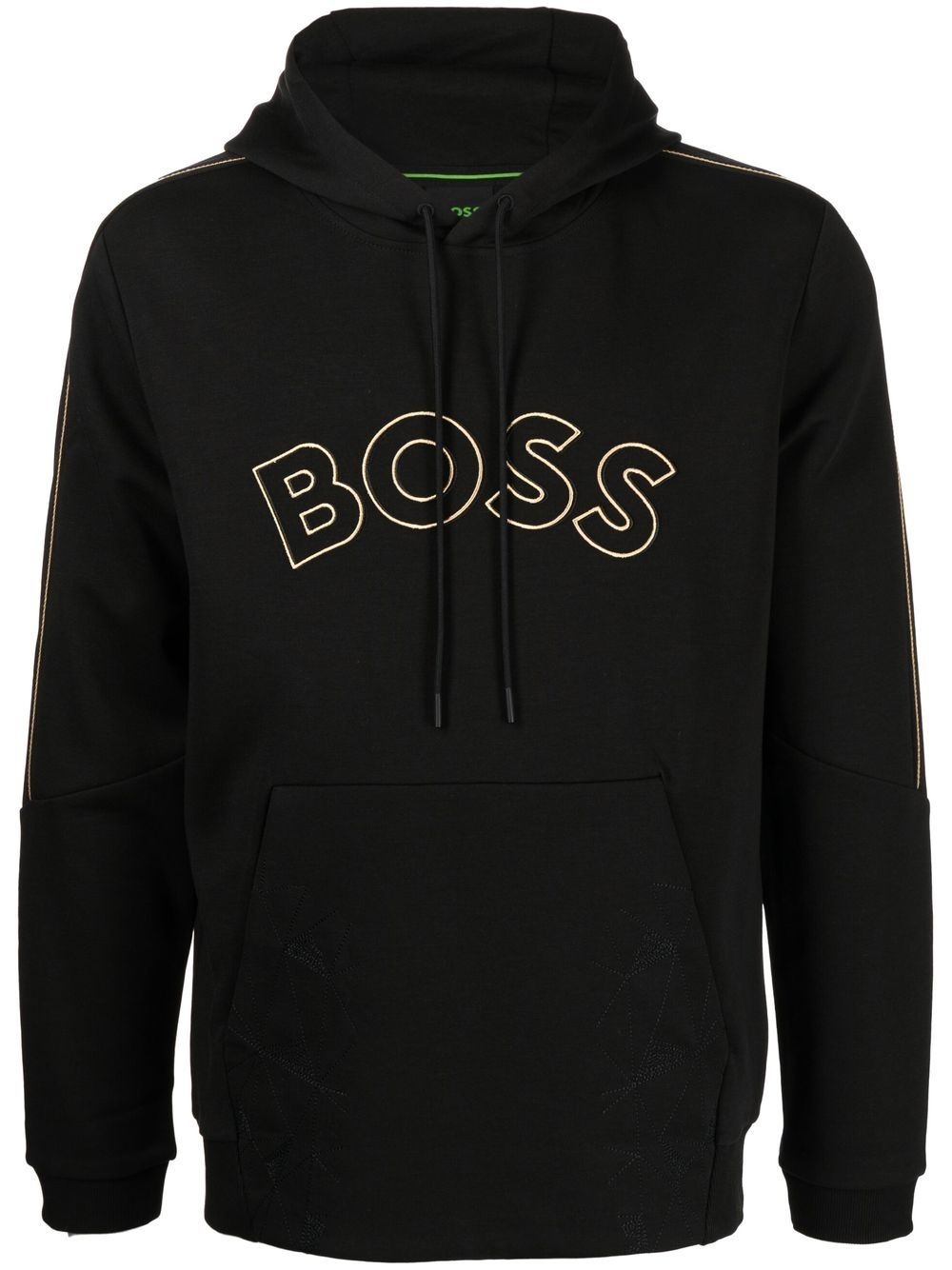 logo-print hoodie black cotton blend logo print at the chest classic hood long sleeves front pouch pocket Imported Composition Body: Cotton 47%, Polyester 46%, Elastane 7% SIZE & FIT Model measurements Height 6 ft 2 in(1.87 m) Bust/Chest 34.25 in(87 cm) Hips 36.22 in(92 cm) Waist 29.52 in(75 cm) FittingInformation This piece fits true to size. We recommend you get your regular size Cut for a loose fit Made with a mid-weight stretch fabric