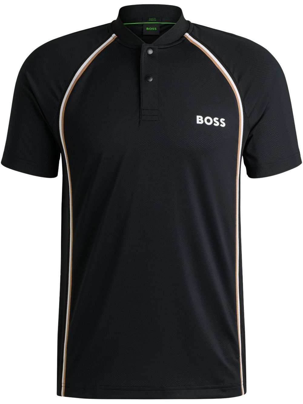 logo-print polo shirt Highlights - Black - Front button placket - Baseball collar - Short raglan sleeves - Straight hem Imported Composition Polyester 91%, Elastane 9% Washing instructions Read Manufacturer Guidelines