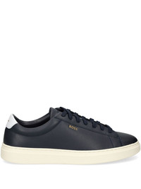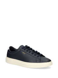 logo-print sneakers Highlights - Navy blue - Front lace-up fastening - Flat rubber sole - Contrasting heel counter - Branded insole Imported Composition Sole: Rubber 100% Lining: Polyester 100% Outer: Calf Leather 100%