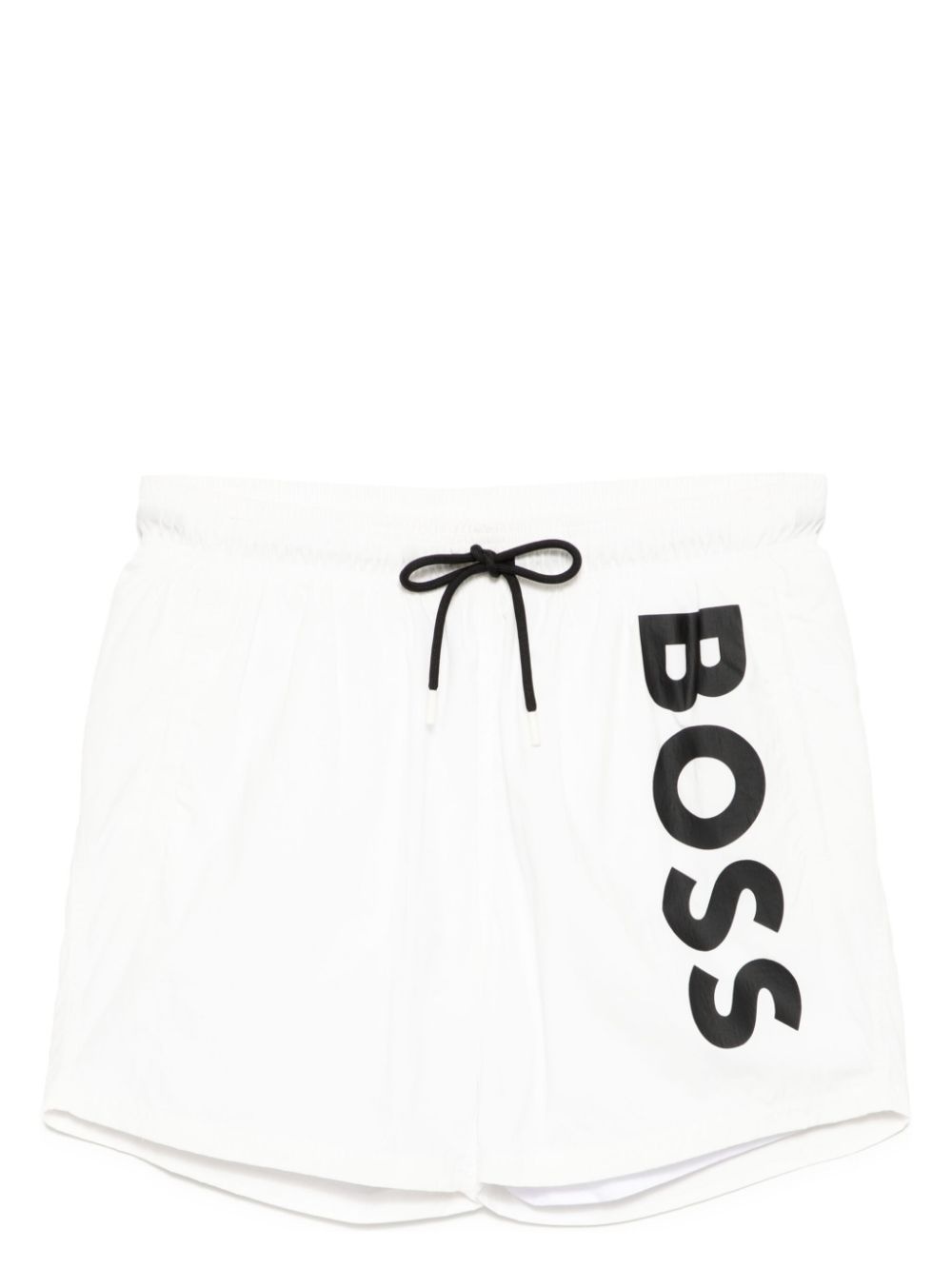 logo print swim shorts Highlights - White/black - Lightweight construction - Elasticated drawstring waistband - Logo print to the front - Two side welt pockets - Rear welt pocket - Mini logo tag - Thigh-length - Be mindful to try on swimwear over your own garments. Imported Composition Lining: Polyester 100% Outer: Polyamide 100% SIZE & FIT Measurement FRONT RISE 10.62 in(27 cm) LENGTH 14.17 in(36 cm) WAIST 26.77 in(68 cm) Washing instructions Machine Wash