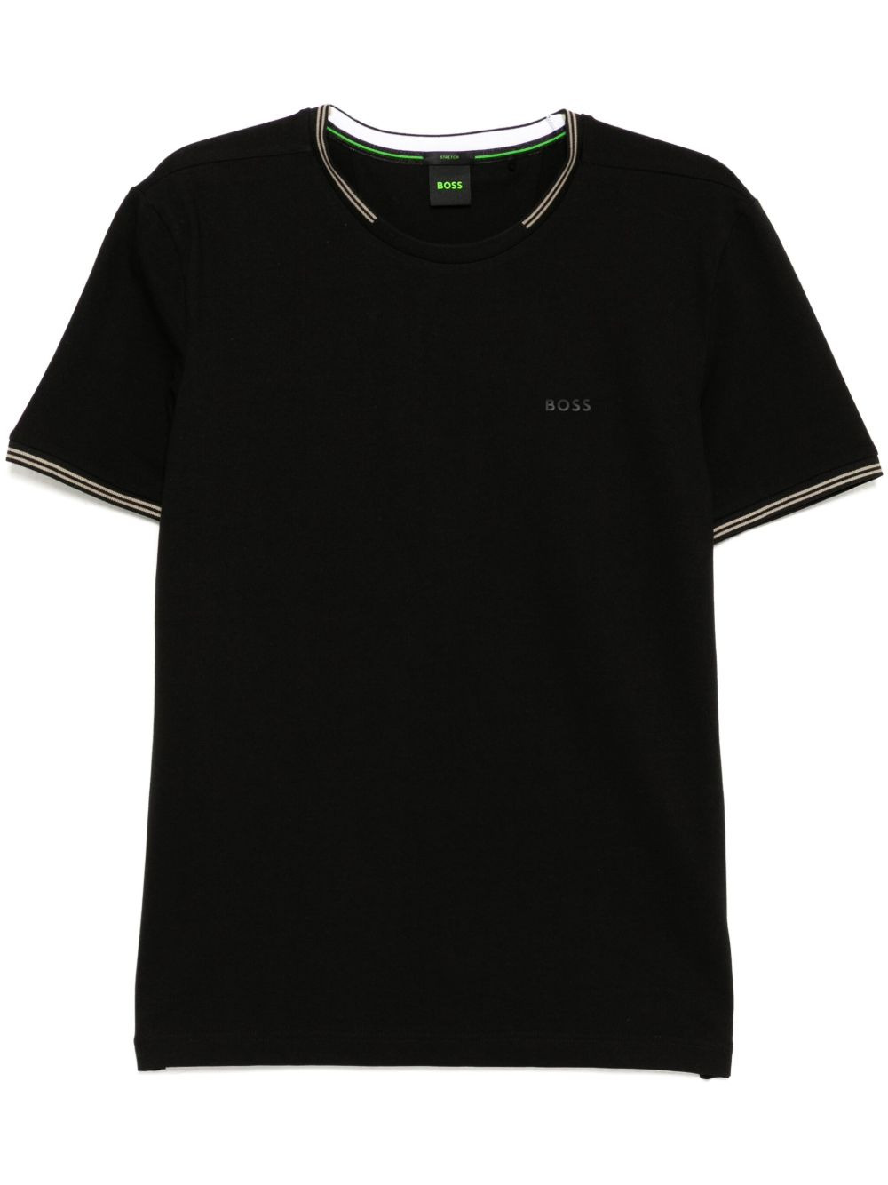 logo-print T-shirt Highlights - Black - Stripe detailing - Crew neck - Straight hem Imported Composition Cotton 92%, Elastane 8% SIZE & FIT FittingInformation Designed for a regular fit allowing for a comfortably loose fit throughout the body Made from a midweight stretch fabric, this piece offers elasticity and flexibility when worn Washing instructions Machine Wash