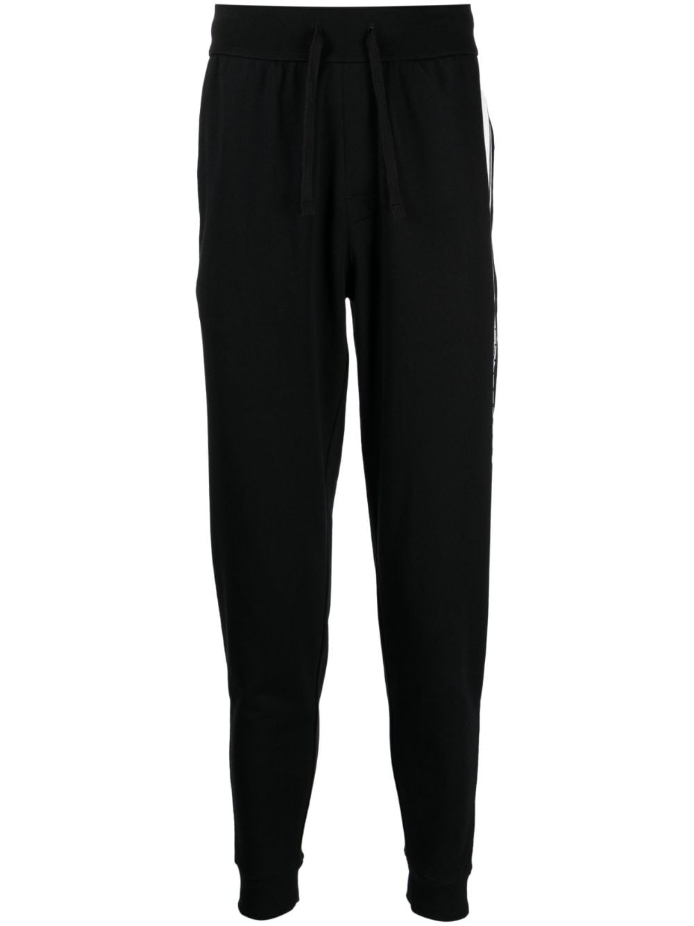 logo-print track pants Highlights - Black/white - Cotton - Logo print to the side - Side stripe detailing - Elasticated drawstring waistband - Two side slit pockets - Tapered leg - Elasticated cuffs Imported Composition Outer: Cotton 100% SIZE & FIT Model measurements Height 6 ft 2 in(1.87 m) Bust/Chest 36.22 in(92 cm) Hips 37.79 in(96 cm) Waist 28.34 in(72 cm) FittingInformation Designed for a relaxed tapered leg, allowing a comfortable loose fit above the knee with a closer fit towards the calves Adjust this piece’s waistband to your preference using the drawstring Made from a midweight non-stretch fabric, this piece offers minimal elasticity when worn This piece fits true to size – take your usual size Washing instructions Machine Wash