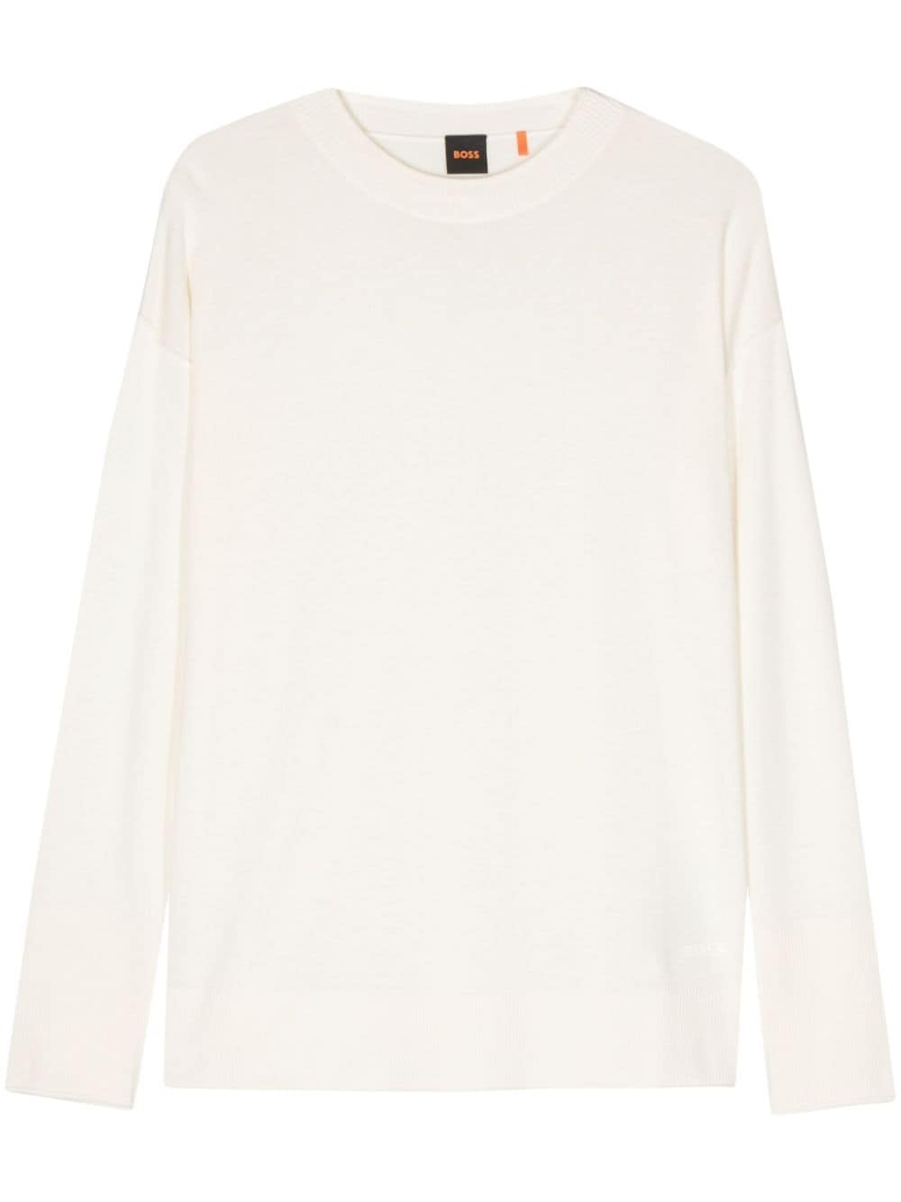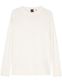 logo-rubberised fine-knit jumper Highlights - Almond beige - Fine knit - Seam detailing - Ribbed trim - Crew neck - Drop shoulder - Long sleeves - Rubberised logo detail - Ribbed hem Imported Composition Viscose 40%, Polyamide 35%, Modal 25% Washing instructions Hand Wash