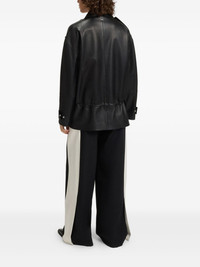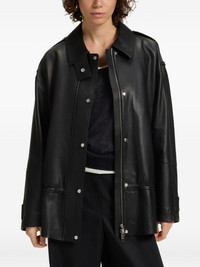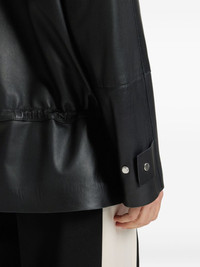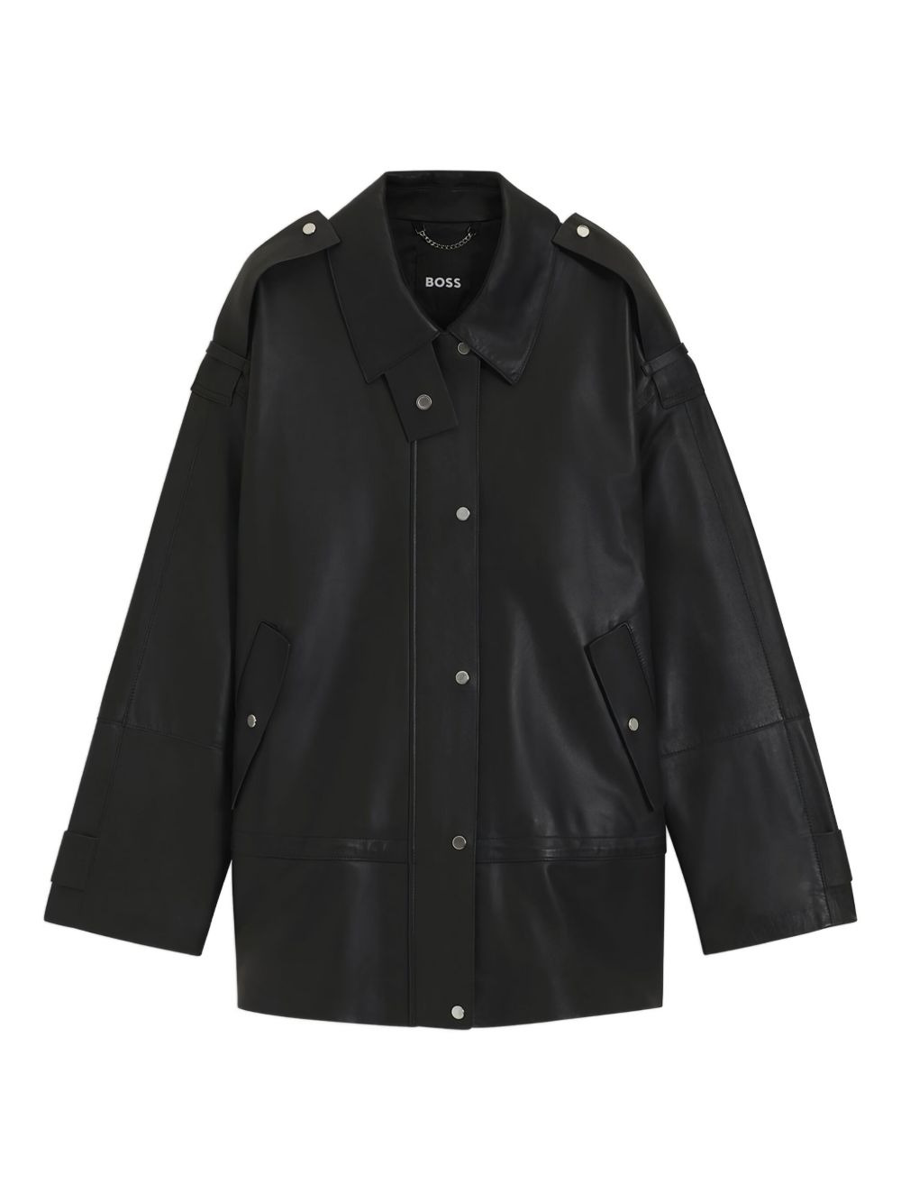 long-length biker jacket Highlights - Black - Button and zip fastening - Long sleeves - Buttoned cuffs - Drawstring waistline Imported Composition Outer: Leather 100% Lining: Polyester 55%, Viscose 45% Washing instructions Do Not Wash/Do Not Dry Clean
