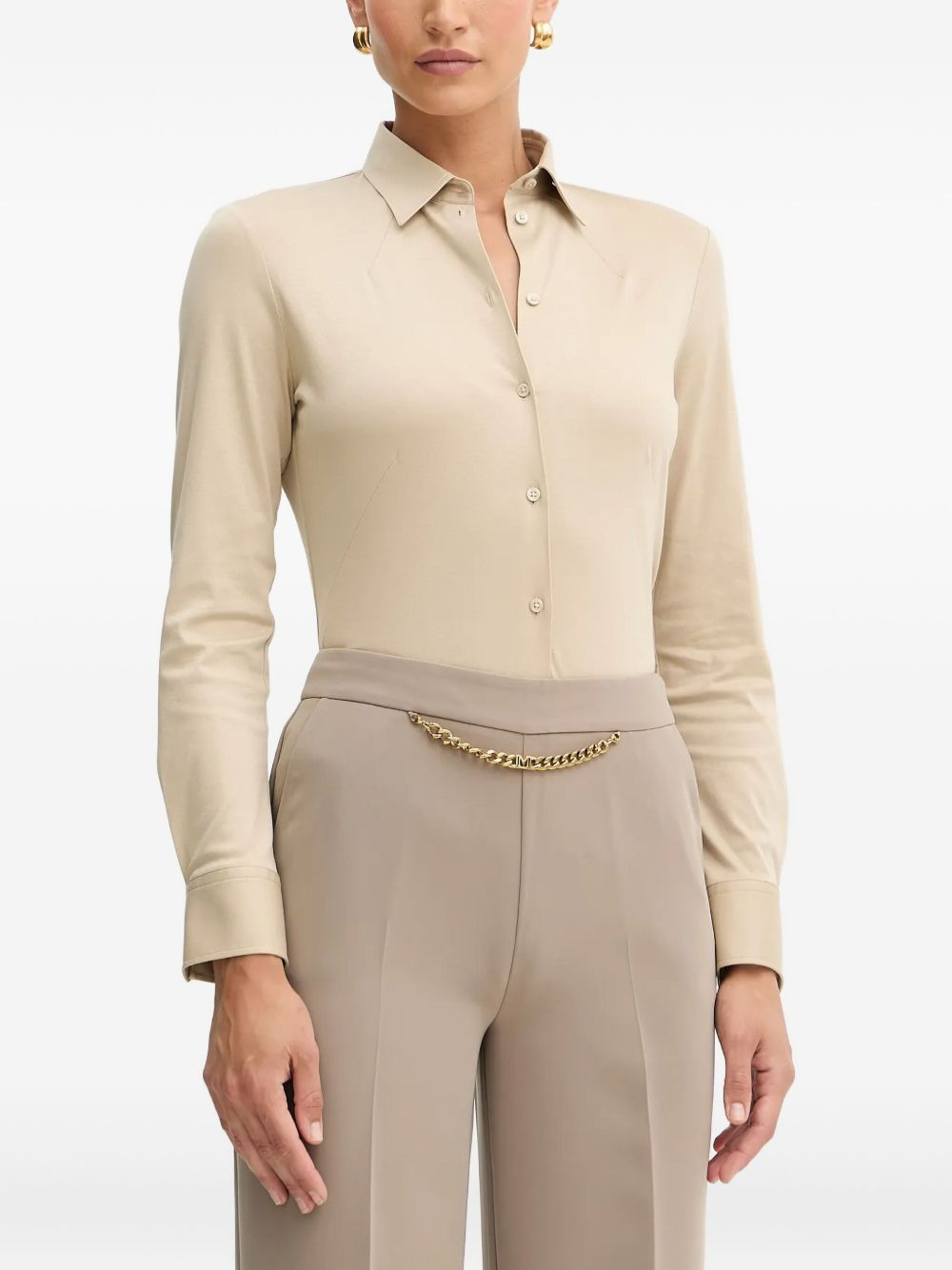 long-sleeve buttoned shirt Highlights - Beige - Long sleeves - Button fastening - Dart stitching Imported Composition Cotton 100% Washing instructions Read Manufacturer Guidelines
