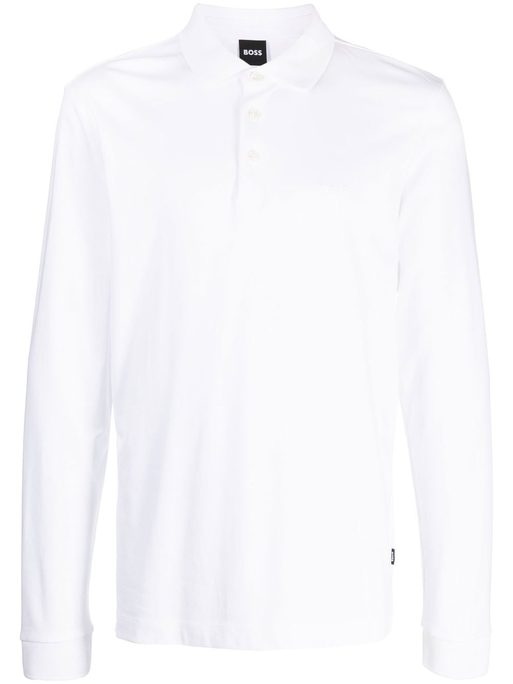 long-sleeve cotton polo shirt white cotton embroidered logo at the chest logo patch to the side polo collar short front button fastening long sleeves Imported Composition Body: Cotton 100% SIZE & FIT Model measurements Height 6 ft 2 in(1.87 m) Bust/Chest 34.25 in(87 cm) Hips 36.22 in(92 cm) Waist 29.52 in(75 cm) FittingInformation This piece fits true to size. We recommend you get your regular size Cut for a slim fit Made with a mid-weight fabric Measurement LENGTH 30.31 in(77 cm) WAIST 42.51 in(108 cm) Washing instructions Machine Wash