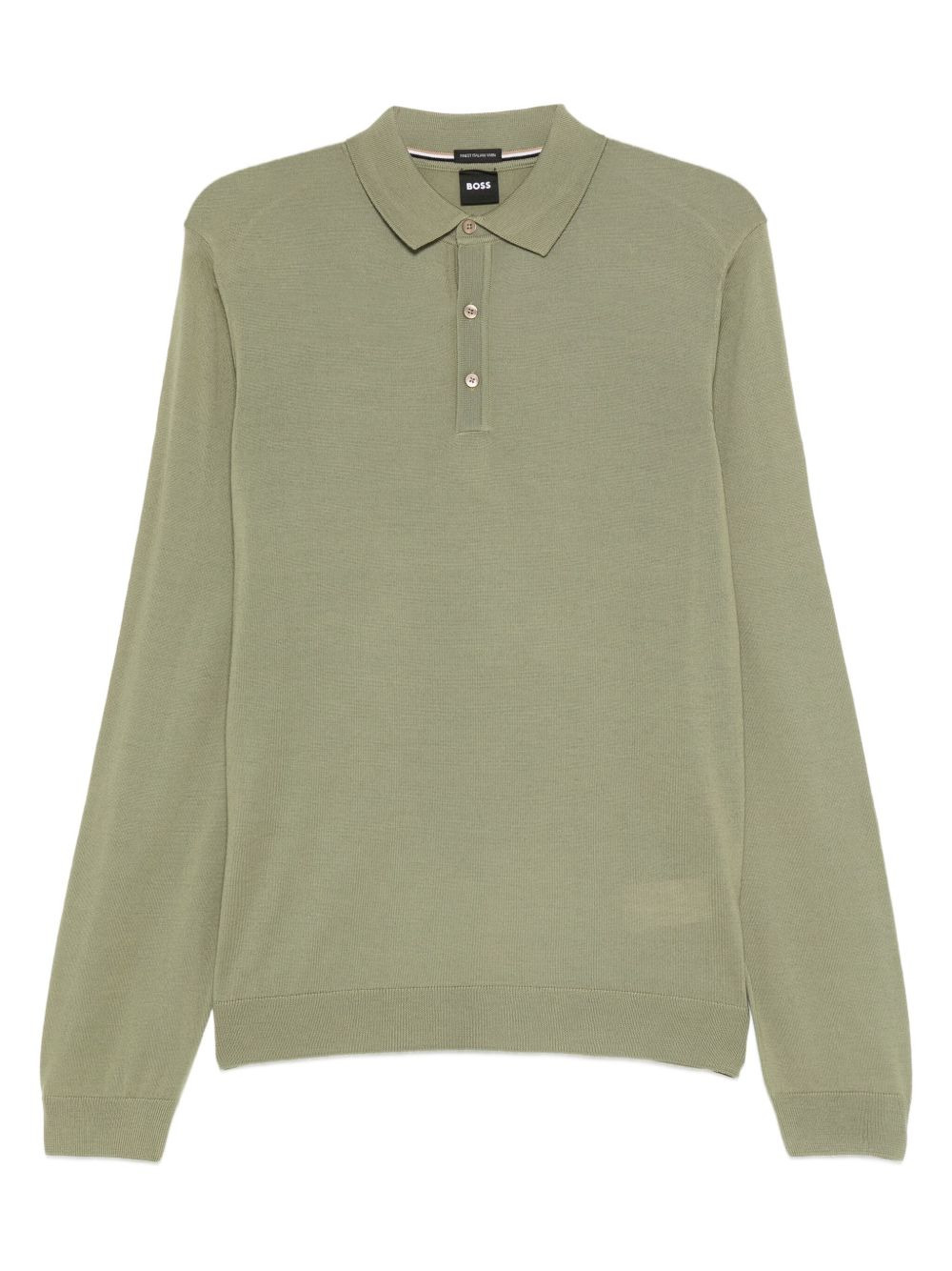 long-sleeve polo shirt Highlights - Green - Wool - Long sleeves - Polo collar - Button placket - Ribbed trims Imported Composition Virgin Wool 100% SIZE & FIT Model measurements Height 6 ft 2 in(1.87 m) Bust/Chest 36.41 in(92.5 cm) Hips 37 in(94 cm) Waist 29.52 in(75 cm) Washing instructions Machine Wash