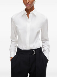 long-sleeve shirt Highlights - White - Stretch-cotton - Spread collar - Concealed front button fastening - Long sleeves - Buttoned cuffs - Straight hem Imported Composition Cotton 72%, Elastomultiester 28% Washing instructions Read Manufacturer Guidelines