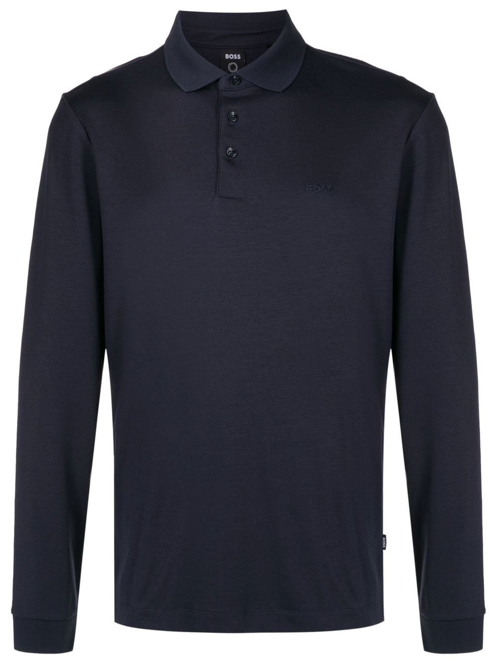long-sleeved polo shirt navy blue cotton embroidered logo at the chest polo collar front button placket long sleeves straight hem Imported Composition Cotton 100% SIZE & FIT Model measurements Height 6 ft 1 in(1.86 m) Bust/Chest 37.4 in(95 cm) Hips 35.43 in(90 cm) Waist 27.95 in(71 cm) Measurement LENGTH 30.31 in(77 cm) WAIST 42.51 in(108 cm) FittingInformation Designed for a regular fit, this polo shirt offers a comfortable loose fit throughout the body Made from a midweight non-stretch fabric, this piece offers minimal elasticity when worn This piece fits true to size – take your usual size Washing instructions Read Manufacturer Guidelines
