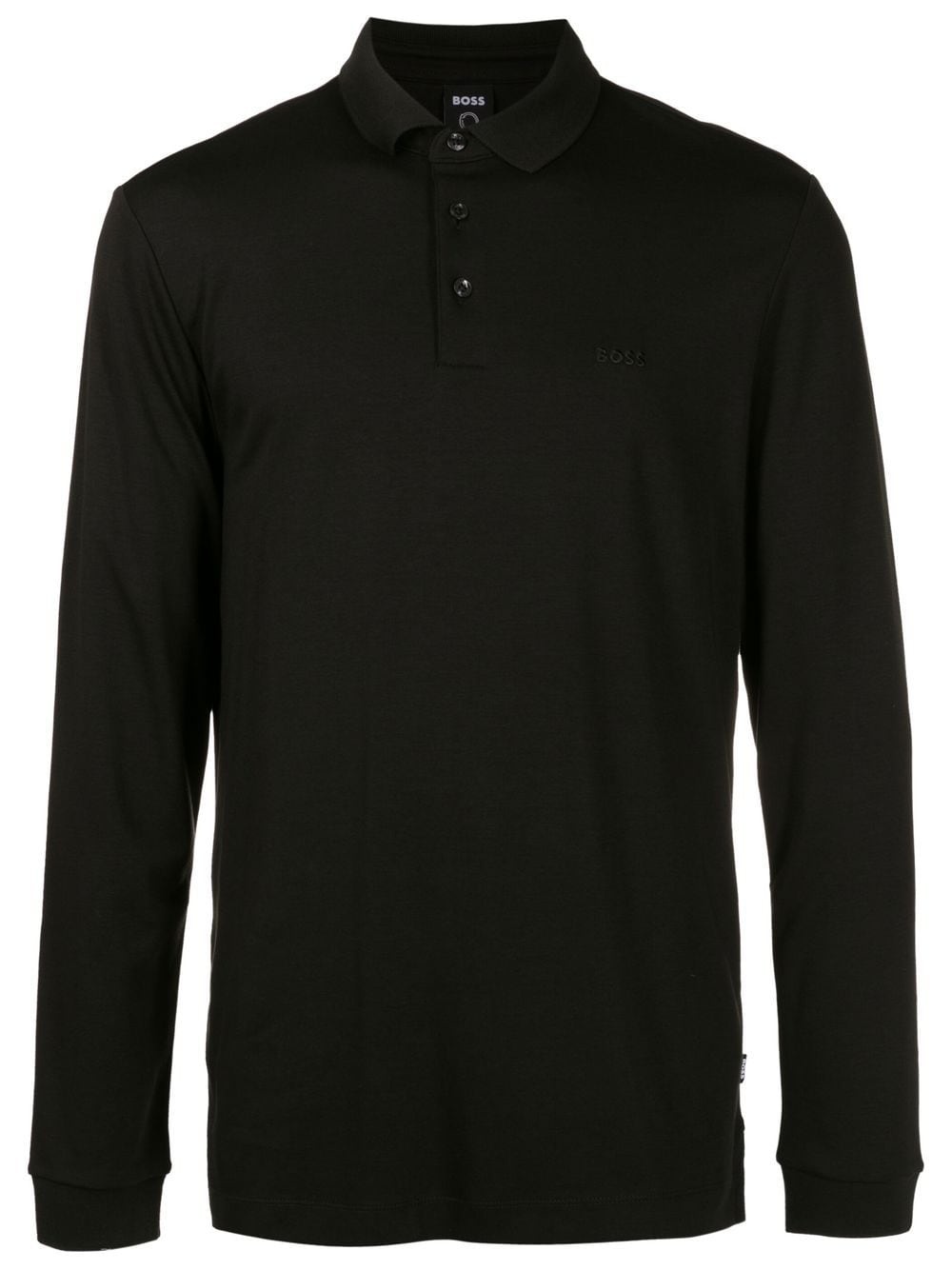 long-sleeved polo shirt black cotton embroidered logo at the chest polo collar short front button fastening long sleeves straight hem Imported Composition Cotton 100% SIZE & FIT Model measurements Height 6 ft 2 in(1.87 m) Bust/Chest 35.43 in(90 cm) Hips 38.18 in(97 cm) Waist 29.52 in(75 cm) FittingInformation Designed for a regular fit, this polo shirt offers a comfortable loose fit throughout the body Made from a midweight non-stretch fabric, this piece offers minimal elasticity when worn This piece fits true to size – take your usual size Measurement LENGTH 30.31 in(77 cm) WAIST 42.51 in(108 cm) Washing instructions Read Manufacturer Guidelines