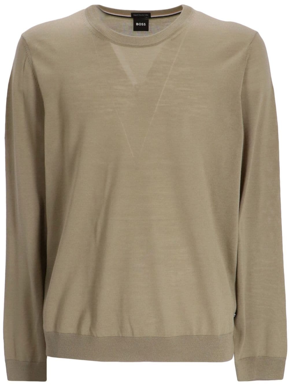 long-sleeved virgin wool jumper Highlights - Taupe brown - Virgin wool - Fine knit - Pullover design - Long sleeves - Crew neck - Ribbed cuffs and hem Made in Italy Composition Body: Virgin Wool 100%