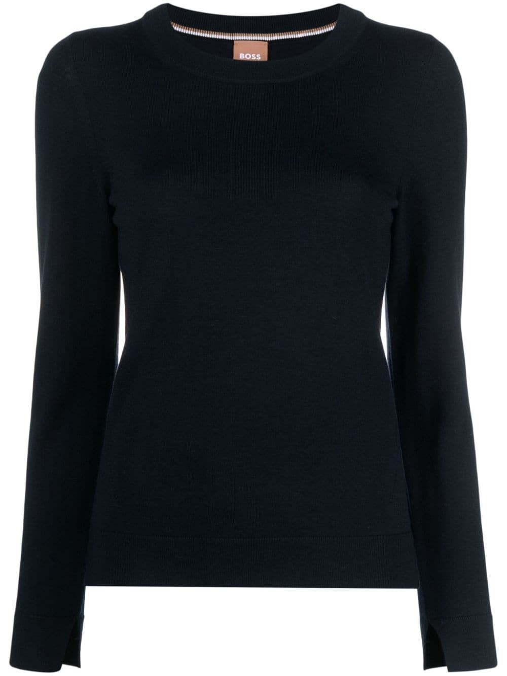 long slit-sleeve virgin wool jumper Highlights - Navy blue - Virgin wool - Crew neck - Long slit sleeves - Ribbed cuffs and hem Imported Composition Virgin Wool 100% SIZE & FIT FittingInformation Designed for a slim fit that sits just away from the body offering a close yet comfortable fit Made with a midweight knit, this piece offers some stretch This piece fits true to size – take your usual size Washing instructions Hand Wash