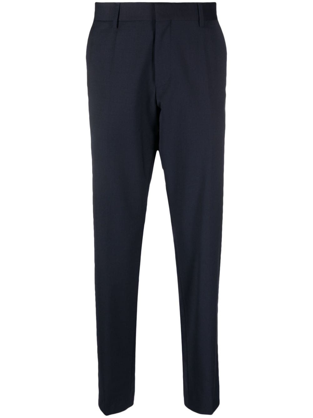 low-rise tailored trousers Highlights - Navy blue - Virgin wool blend - Dart detailing - Concealed front fastening - Two side slash pockets - Two rear welt pockets - Tailored cut - Low-rise - Belt loops - Straight hem Imported Composition Lining: Viscose 100% Outer: Virgin Wool 74%, Polyester 22%, Elastane 4% SIZE & FIT Model measurements Height 6 ft 2 in(1.88 m) Bust/Chest 37.79 in(96 cm) Hips 35.82 in(91 cm) Waist 29.92 in(76 cm) FittingInformation Designed for a slim fit, offering a comfortable fit that sits just away from the leg Made from a midweight stretch fabric, this piece offers elasticity and flexibility when worn This piece fits true to size – take your usual size