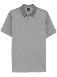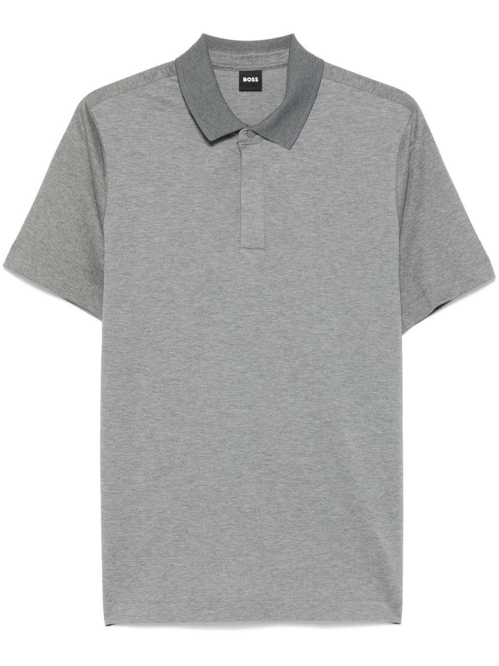 melange-effect polo shirt Highlights - Light grey - Short front button fastening - Polo collar - Short sleeves - Short side slits Imported Composition Cotton 73%, Polyester 17%, Elastane 10% SIZE & FIT Model measurements Height 6 ft 0 in(1.84 m) Bust/Chest 35.82 in(91 cm) Hips 37 in(94 cm) Waist 28.34 in(72 cm) FittingInformation Designed for a regular fit, this polo shirt offers a comfortable loose fit throughout the body Made from a midweight stretch fabric, this piece offers elasticity and flexibility when worn