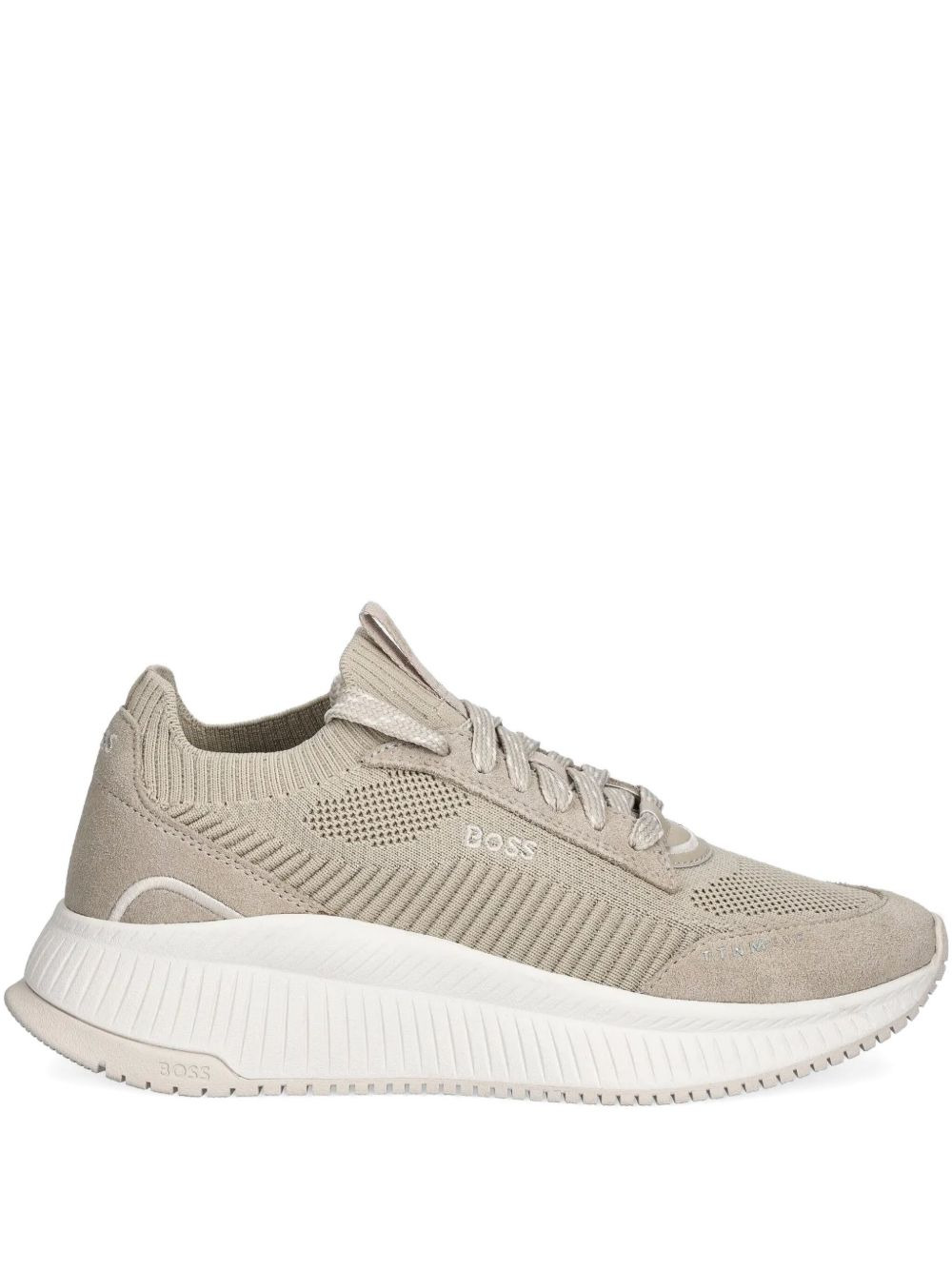 mesh suede sneakers Highlights - Light beige - Ribbed knit upper - Suede heel panel - Lace-up fastening - Textured sole Imported Composition Lining: Polyester 85%, Polyurethane 15% Outer: Recycled Polyester 100% Sole: Polyethylene vinyl acetate (PEVA) 100%
