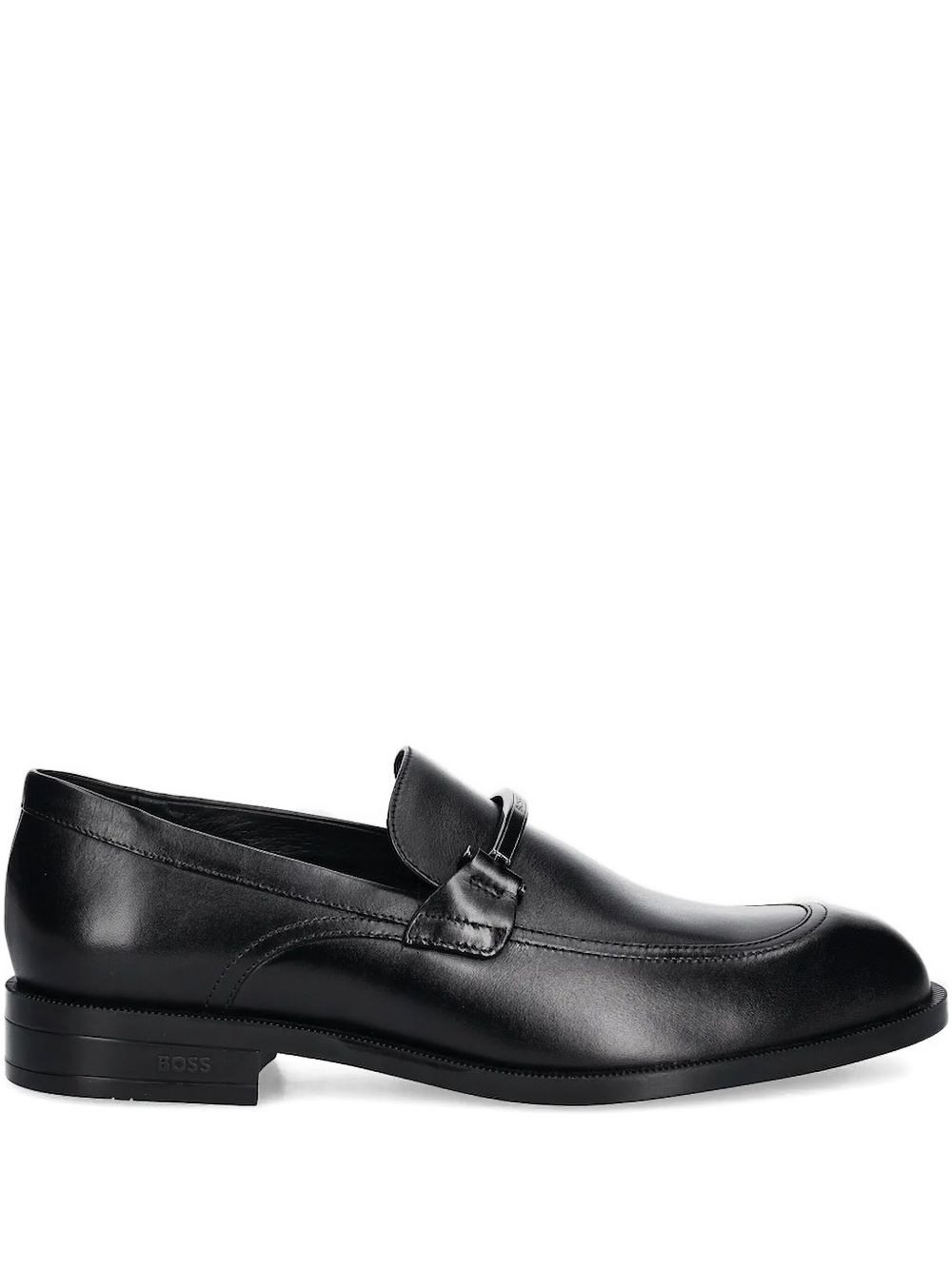 metal-bar leather loafers Highlights - Black - Leather upper - Metal-bar detail - Slip-on style - Almond toe Imported Composition Outer: Leather 100% Lining: Polyurethane 100%, Fabric 100% Sole: Rubber 100%