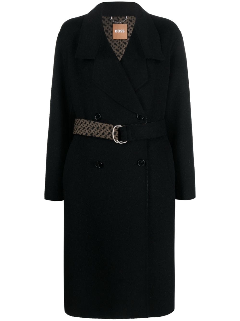 monogram-jacquard belt wool-blend coat Highlights - Black - Wool blend - Brushed finish - Monogram jacquard belt - Seam detailing - Detachable belt - Asymmetric lapels - Double-breasted button fastening - Long sleeves - Two side welt pockets - Central rear vent - Monogram-pattern lining Imported Composition Lining: Wool 50%, Polyamide 25%, Polyester 25% Outer: Wool 60%, Polyamide 20%, Polyester 20%