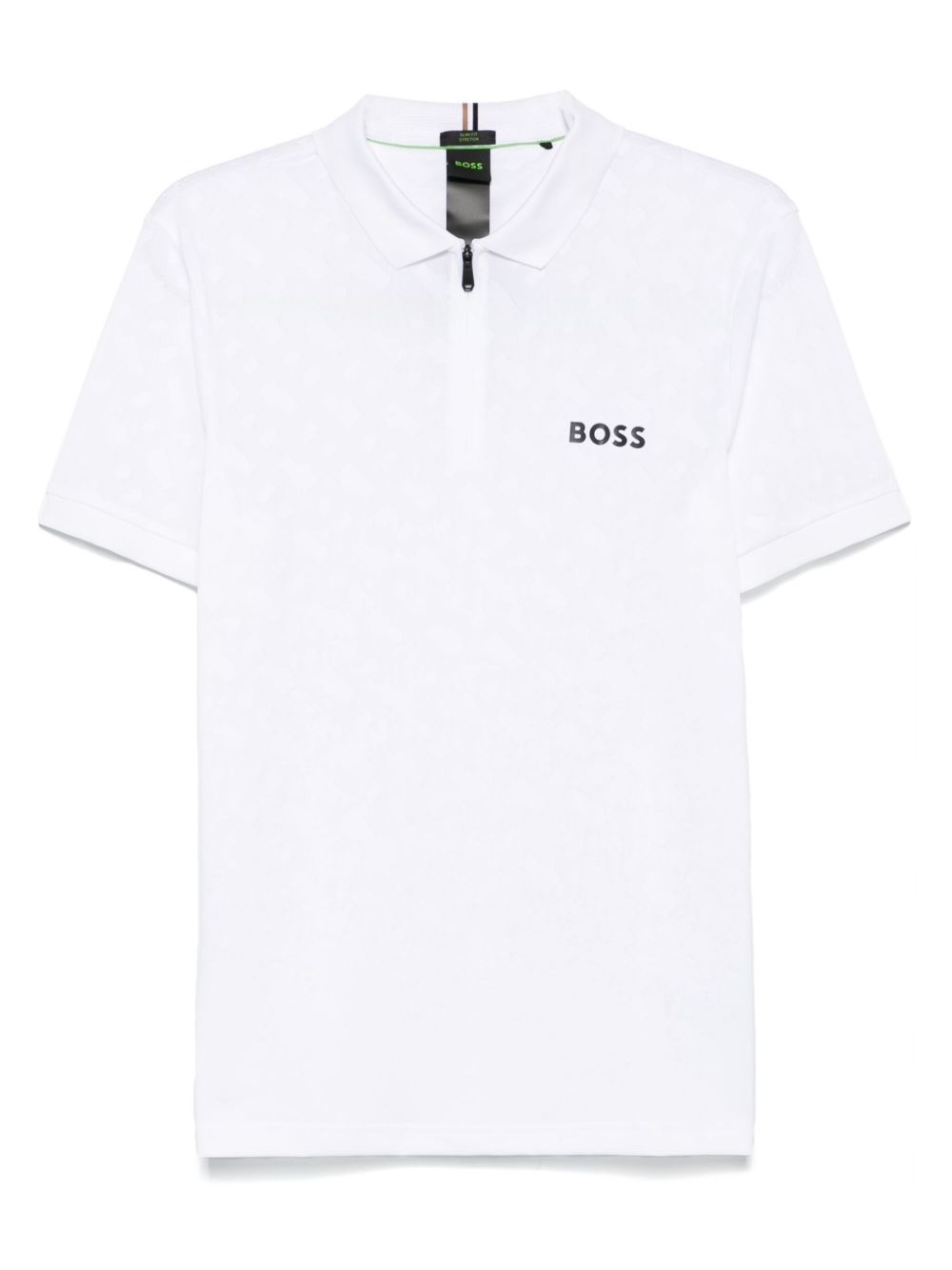 monogram-jacquard polo shirt Highlights - White - Half front zip fastening - Short sleeves - Straight hem Imported Composition Recycled Polyester 75%, Polyester 25% SIZE & FIT Model measurements Height 6 ft 2 in(1.87 m) Bust/Chest 36.41 in(92.5 cm) Hips 37 in(94 cm) Waist 29.52 in(75 cm) FittingInformation Designed for a slim fit, this polo shirt offers a comfortable fit that sits just away from the body Made from a midweight non-stretch fabric, this piece offers minimal elasticity when worn Washing instructions Machine Wash