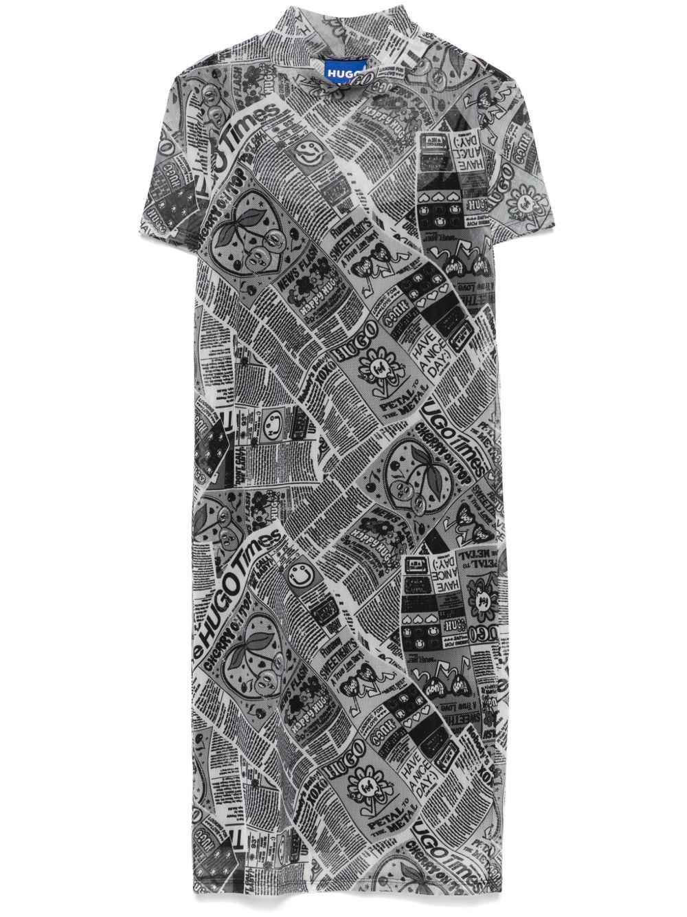 newspaper-print mesh mini dress Highlights - Medium grey - Stretch-design - Mesh design - Newspaper print - Mock neck - Short sleeves - Detachable slip dress - Straight hem - Thigh-length Imported Composition Outer: Polyester 94%, Elastane 6% Lining: Polyamide 67%, Elastane 33% SIZE & FIT Model measurements Height 5 ft 10 in(1.78 m) Bust/Chest 33.85 in(86 cm) Hips 36.61 in(93 cm) Waist 26.77 in(68 cm) FittingInformation Designed for a close fit throughout The detachable slip sits just away from the body, offering a close yet comfortable fit Made from a lightweight stretch fabric, this piece offers elasticity and flexibility when worn