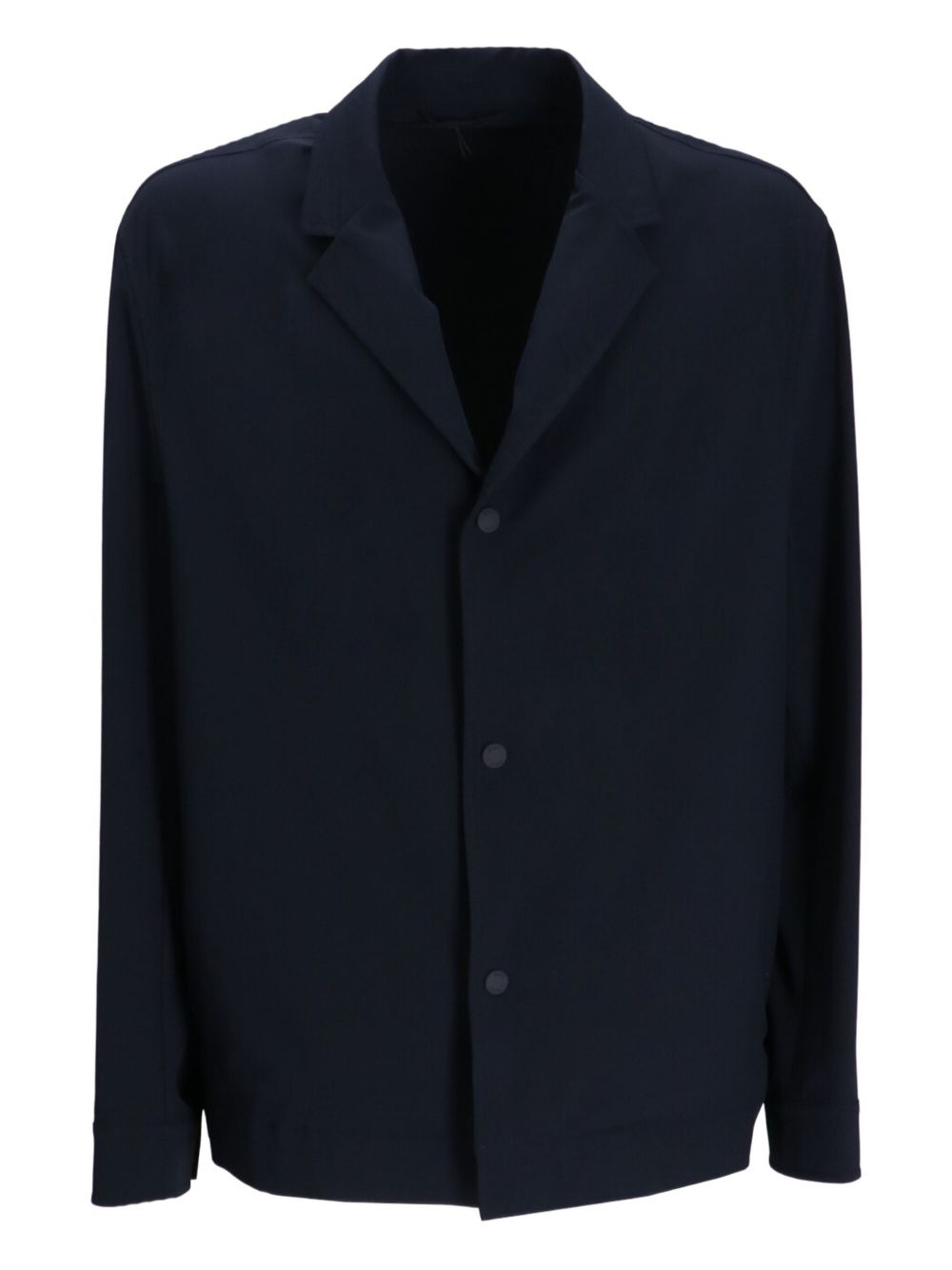 notched-collar button-up jacket Highlights - Dark navy blue - Notched collar - Button fastening - Long sleeves - Buttoned cuffs Imported Composition Polyester 100%