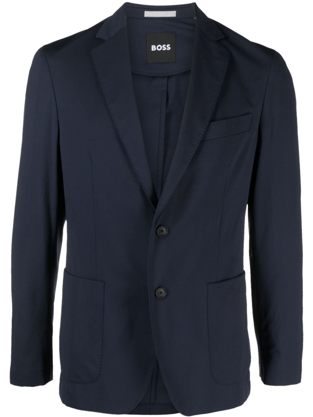 notched-lapels single-breasted blazer Highlights - Navy blue - Stretch-design - Notched lapels - Front button fastening - Long sleeves - Faux buttoned cuffs - Chest welt pocket - Front patch pocket - English rear vents - Straight hem - No lining Imported Composition Outer: Polyamide 85%, Elastane 15% Lining: Polyamide 68%, Polyester 32% SIZE & FIT Model measurements Height 6 ft 1 in(1.86 m) Bust/Chest 37.4 in(95 cm) Hips 36.22 in(92 cm) Waist 29.52 in(75 cm) FittingInformation Designed for a slim fit, offering a comfortable fit that sits just away from the body The vented hem offers movement at the rear Made from a midweight stretch fabric, this piece offers elasticity and flexibility when worn This piece fits true to size – take your usual size Washing instructions Machine Wash
