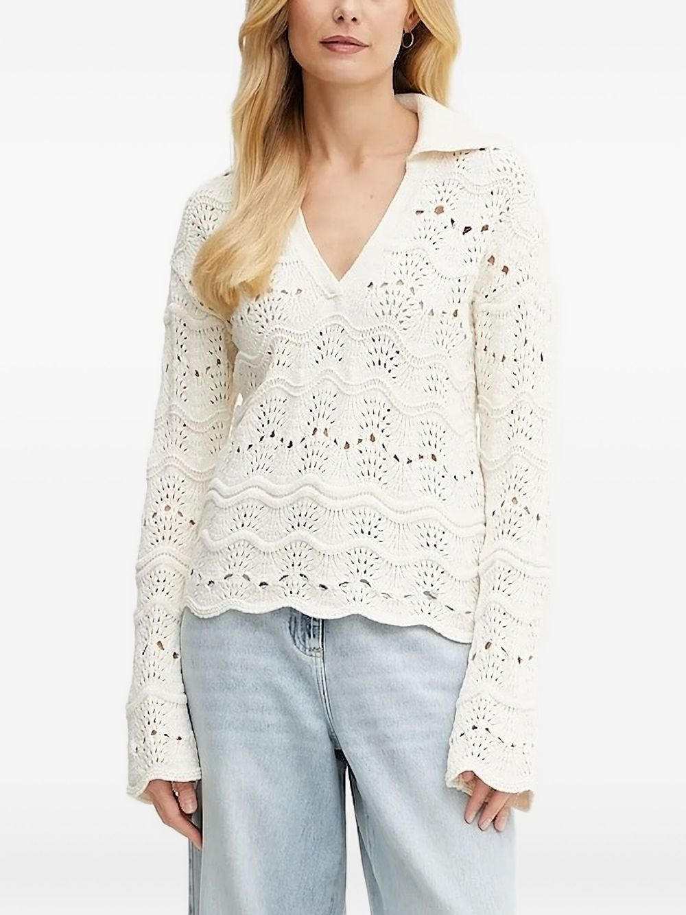 open-knit collared sweater Highlights - White - Open-knit pattern - Collared neckline - Long sleeves - Cotton-blend Imported Composition Cotton 75%, Polyamide 25% Washing instructions Read Manufacturer Guidelines