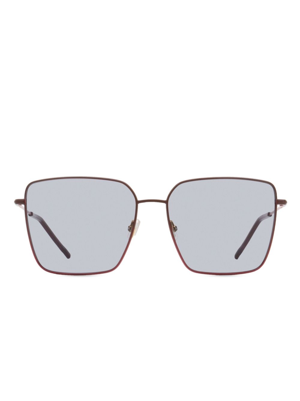 oversize-square sunglasses Highlights - Dark red - Square frame - Nose pads - Straight arms - Grey tinted lenses Imported Composition Acetate 100%, Metal 100% SIZE & FIT Measurement Arm Length 5.7 in(14.5 cm) Bridge Width 0.62 in(1.6 cm) Lens Diameter 2.32 in(5.9 cm) Total Width 5.82 in(14.8 cm)