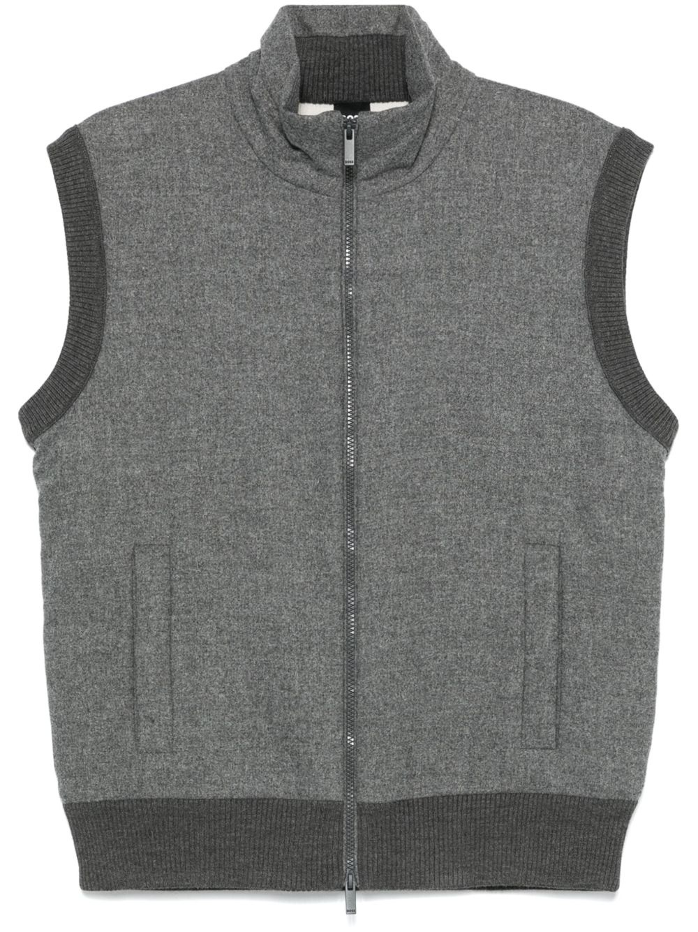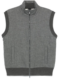 padded gilet Highlights - Anthracite grey - Front zip fastening - Two side welt pockets - Ribbed cuffs and hem Imported Composition Outer: Polyester 55%, Virgin Wool 45% Lining: Polyester 100% Washing instructions Machine Wash