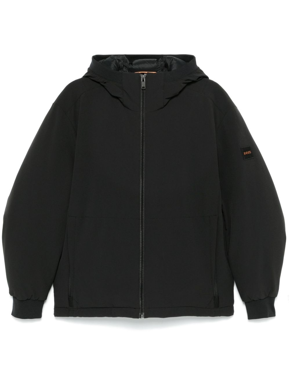 padded hooded jacket Highlights - Black - Front zip fastening - Two side zip-fastening pockets Imported Composition Outer: Polyamide 92%, Elastane 8% Lining: Polyester 100%, Polyamide 100%, Recycled Polyester 100% SIZE & FIT Model measurements Height 6 ft 2 in(1.87 m) Bust/Chest 37.79 in(96 cm) Hips 37.79 in(96 cm) Waist 30.31 in(77 cm) FittingInformation Designed for a regular fit, allowing for a comfortably loose fit throughout the body The internal drawstring at the hem allows for fitted preferences Made from a padded non-stretch fabric, giving it no natural elasticity