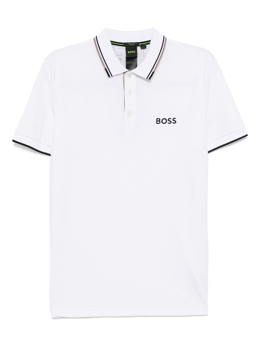 Paddy polo shirt Highlights - White - Short front button fastening - Polo collar - Straight hem Imported Composition Cotton 56%, Polyester 39%, Elastane 5% SIZE & FIT Model measurements Height 6 ft 2 in(1.87 m) Bust/Chest 33.07 in(84 cm) Hips 35.43 in(90 cm) Waist 26.77 in(68 cm) FittingInformation Designed for a regular fit, this polo shirt offers a comfortable loose fit throughout the body Made from a midweight stretch fabric, this piece offers elasticity and flexibility when worn Washing instructions Machine Wash