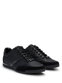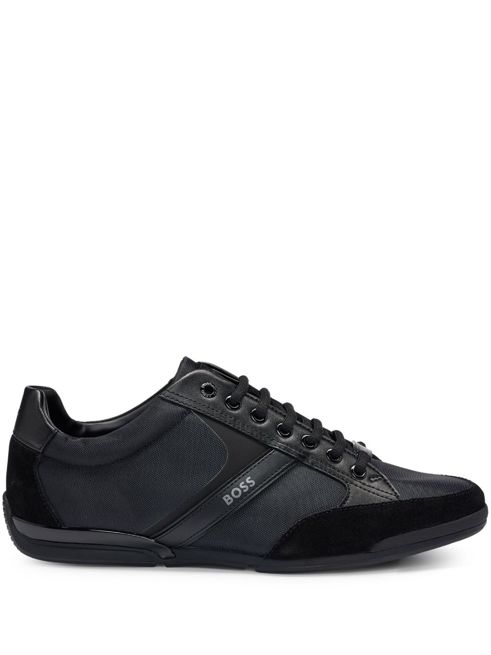 panelled-design sneakers Highlights - Black - Faux leather - Textured finish - Panelled design - Suede panelling - Front lace-up fastening - Branded heel counter - Logo patch at the tongue - Logo print to the side - Round toe - Branded insole - Flat rubber sole Imported Composition Sole: Rubber 80%, Polyurethane 20% Outer: Polyester 100%, Calf Leather 100% Lining: Polyester 48%, Viscose 48%, Polyurethane 4% Washing instructions Do Not Wash/Do Not Dry Clean
