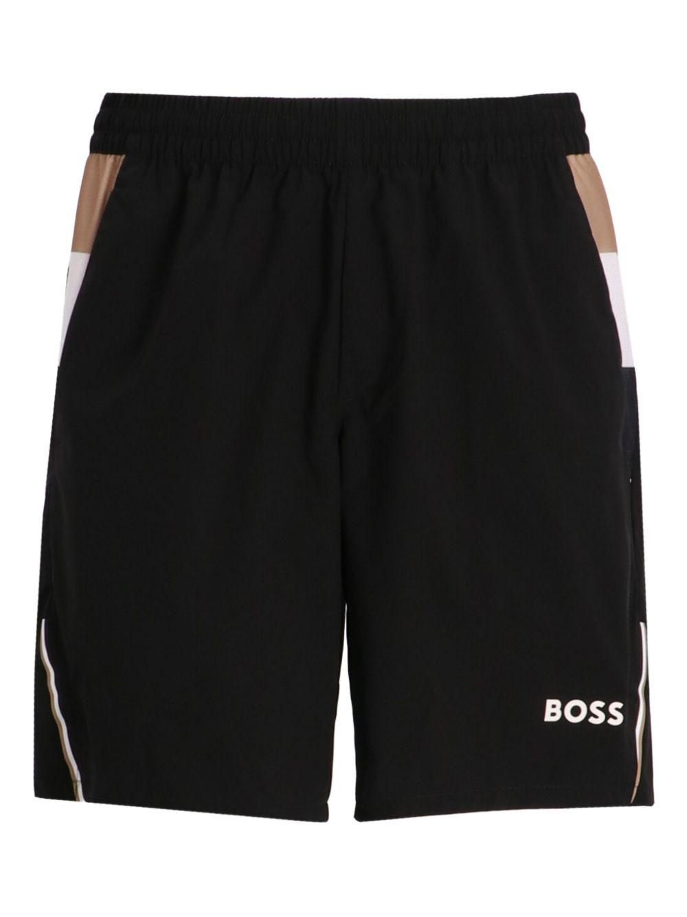 panelled elastic-waist shorts Highlights - Black - Beige panelling - Elasticated waistband - Side pockets - Logo detail - Curved side seams Imported Composition Elastomultiester 100% Washing instructions Read Manufacturer Guidelines