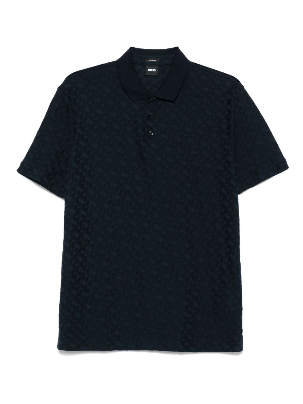 patterned-jacquard polo shirt Highlights - Navy blue - Short front button fastening - Short sleeves - Short side slits - Straight hem Imported Composition Cotton 100% SIZE & FIT Model measurements Height 6 ft 1 in(1.86 m) Bust/Chest 37.4 in(95 cm) Hips 36.22 in(92 cm) Waist 29.52 in(75 cm) FittingInformation Designed for a relaxed fit, this polo shirt offers comfort and movement Made from a midweight non-stretch fabric, this piece offers minimal elasticity when worn